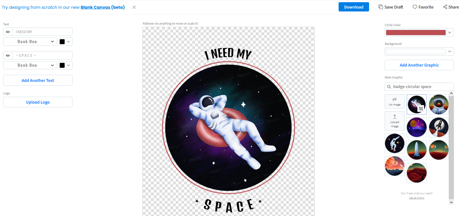 On the other hand, you could start from scratch for something really unique. Add several lines of text, and experiment with images, shapes, and graphics. See what they look like on different kinds of t-shirts.