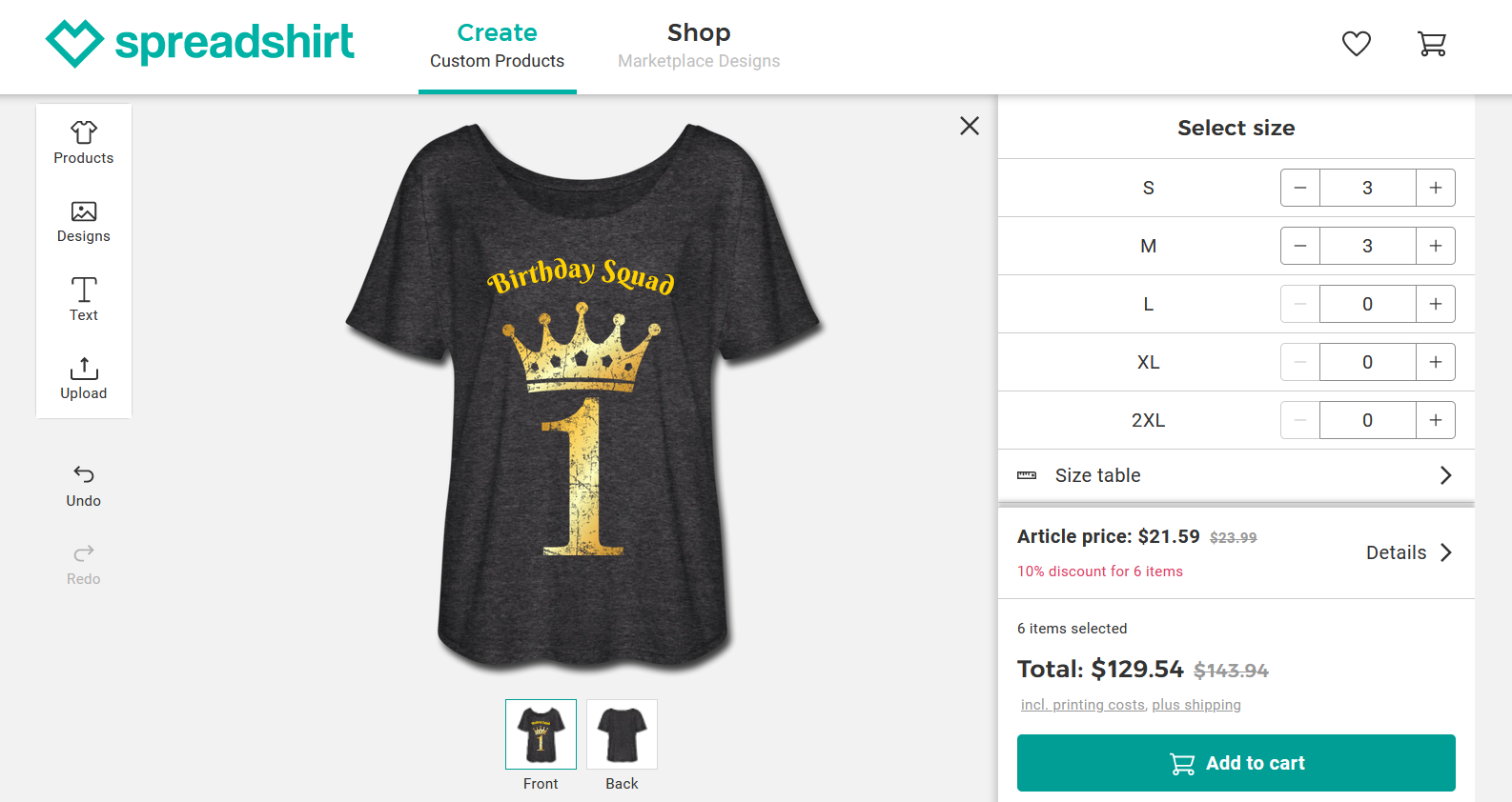 Spreadshirt is not the cheapest when it comes to single t-shirts, but its discounts on bulk orders are worthwhile. If you want to print lots of tops, keep this service in mind.