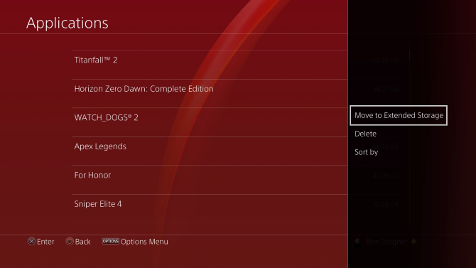 Now press Options on your controller and select Move to Extended Storage (or Move to System Storage). Check all the games you want to move, then hit Move and confirm.