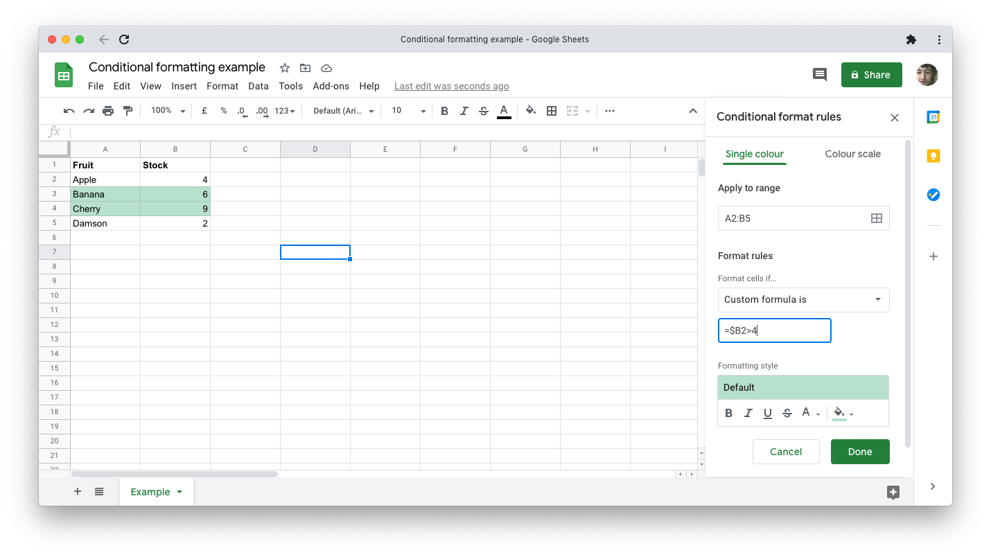 - From the Format menu, choose Conditional formatting.