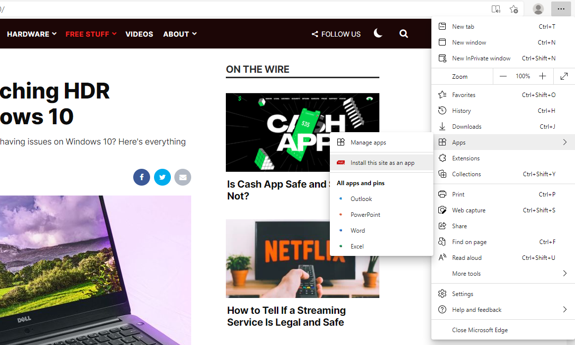 This Microsoft Edge feature makes it simple to manage frequently used websites by installing them as apps. You may choose to pin the website to your Start Menu or desktop.
